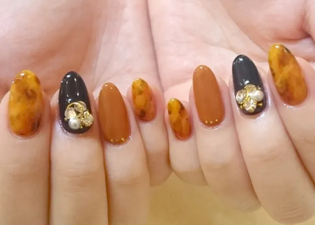 基本のべっ甲ネイルをマスターしたら、次はアレンジに挑戦してみましょう。色の組み合わせやデザインを少し変えるだけで、全く違う雰囲気を楽めます。