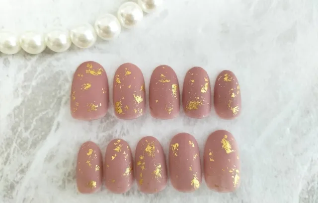決まりきったデザインではなく自分らしさを表現したい方には、曖昧な色使いが特徴のニュアンスネイルが支持されています。複数の色を混ぜ合わせたり、塗りかけのようなラフなタッチを入れたりすれば、他にはないオリジナルの雰囲気が完成します。金箔やシェル、ワイヤーなどの異素材パーツとの組み合わせは、和装の重厚感にも負けないおしゃれな仕上がりです。周りと被らない個性を大切にしたい方は、ニュアンスネイルで差をつけましょう。