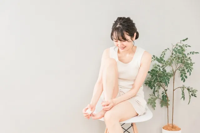 足の巻き爪に関しては、ネイルの影響だけでなく、日頃履いている靴や歩き方が原因であることも少なくありません。つま先が細いパンプスやサイズが合っていない靴は、爪を横から圧迫し、巻き爪を悪化させる大きな要因となります。ネイルお休み期間中は、なるべくつま先にゆとりのあるスニーカーや、足の形に合った靴を選び、爪への物理的な負担を減らしてあげてください。また、足の指を使ってしっかりと地面を蹴る正しい歩行を心がければ、下からの圧力が爪にかかり、爪が平らに広がろうとする力が働く結果、自然な巻き爪予防につながります。